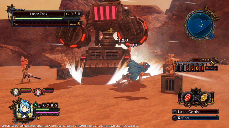 Now Let's Get In Formation - Fight alongside Quinn and your two party members as they explore the endless desert, filled with ancient, robotic foes. Each character has specific roles and arranging your formation is key! Ace of Bases - Build your base and choose facilities to upgrade your party's needs! Equip your allies with a flurry of weapons and input their action commands to your strategic liking!