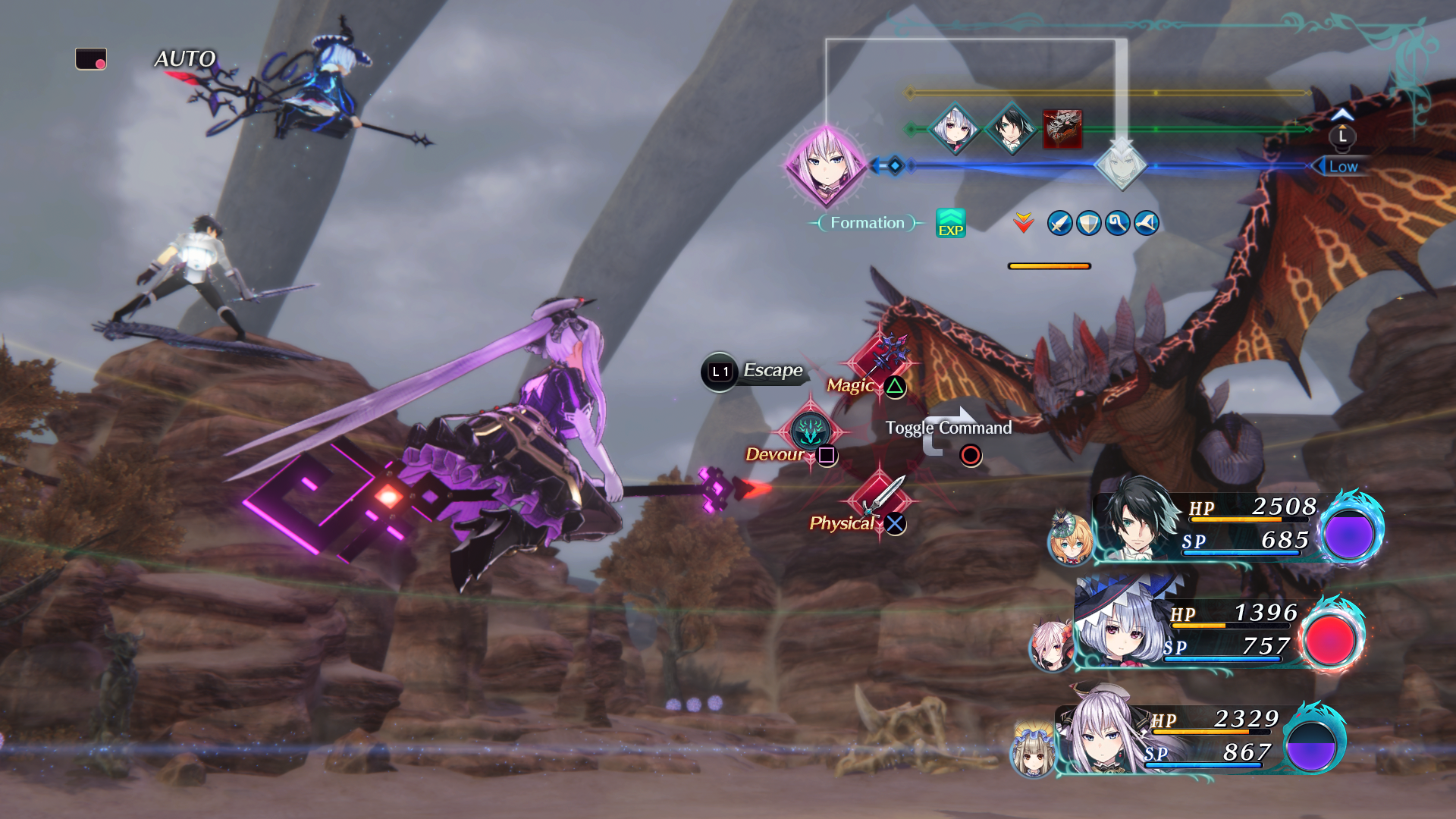 • Battles Take Flight – Fight enemies midair in a unique, vertically-oriented battle system. Strategically position your party at different tiers to attack and disable the enemy’s skills, one level at a time!