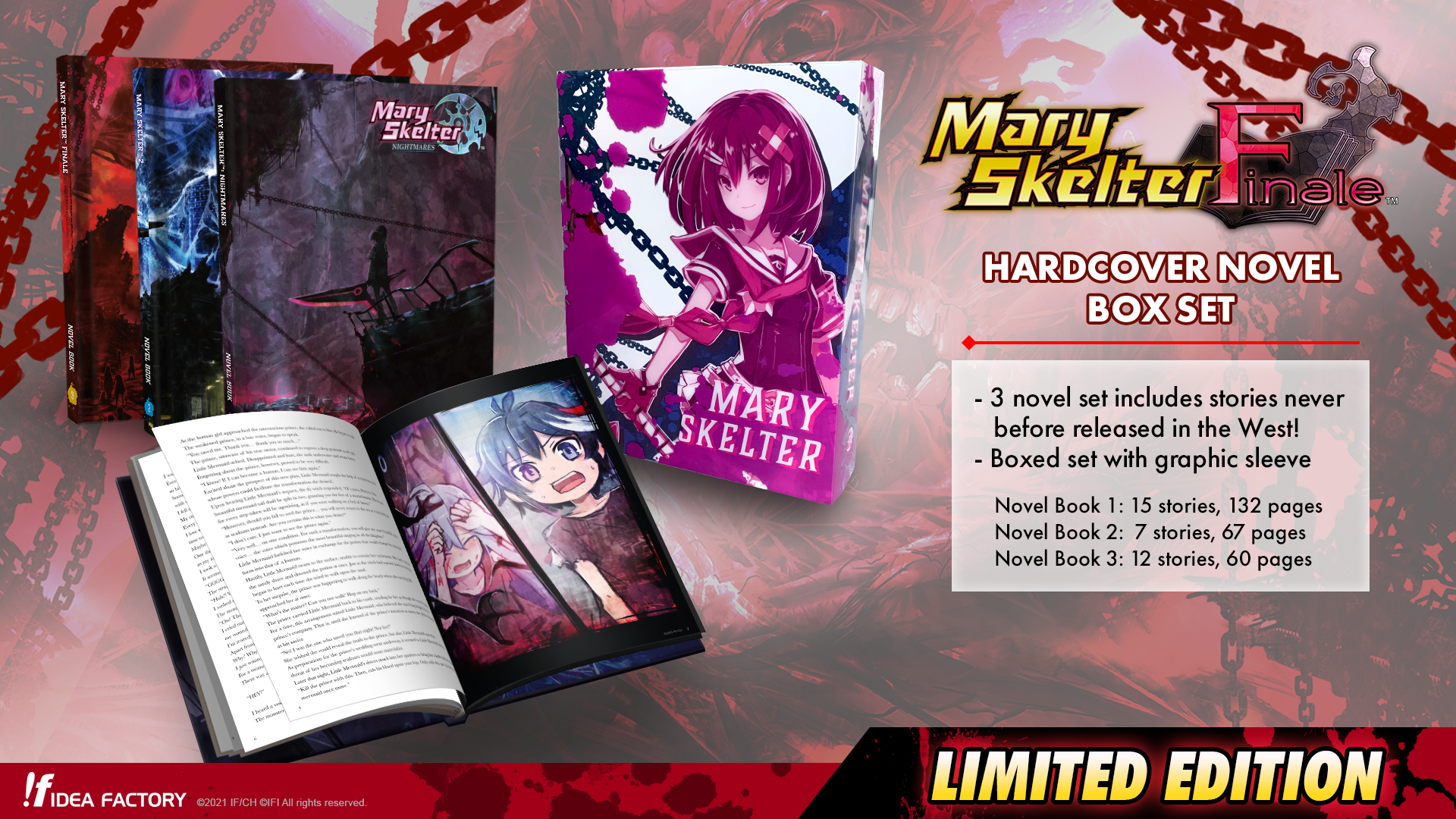 - Nightmare Déjà vu – Mary Skelter Finale includes all of the event scenes from Mary Skelter: Nightmares and Mary Skelter 2! With the BEFORE STORY option, newcomers can catch up on the story before tackling the series finale, and veterans can sit back and relive the epic story of Mary Skelter!