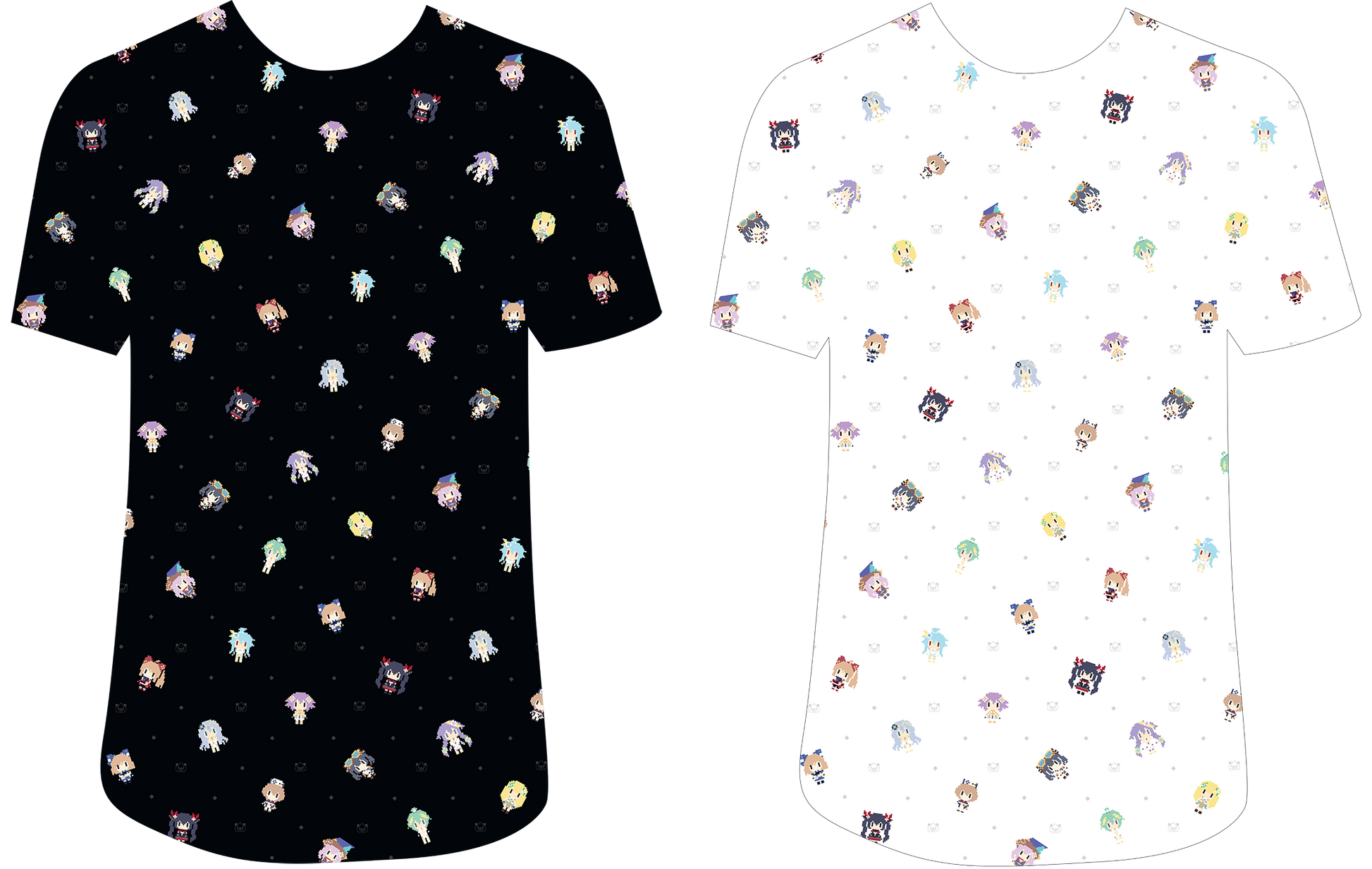 This shirt sports an adorable pattern of Goddesses, Goddess Candidates, and dogoos in their pixel forms, all using their designs from Cyberdimension Neptunia: 4 Goddesses Online! Now you can represent the whole dimension and look extra-dimensional!